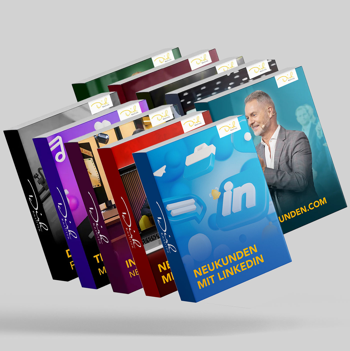 10 Kurse. 1 Ziel: Täglich neue Kundenanfragen über LinkedIn, YouTube, Instagram, TikTok, Podcast, Messe & Co. – mit Plan statt Zufall.